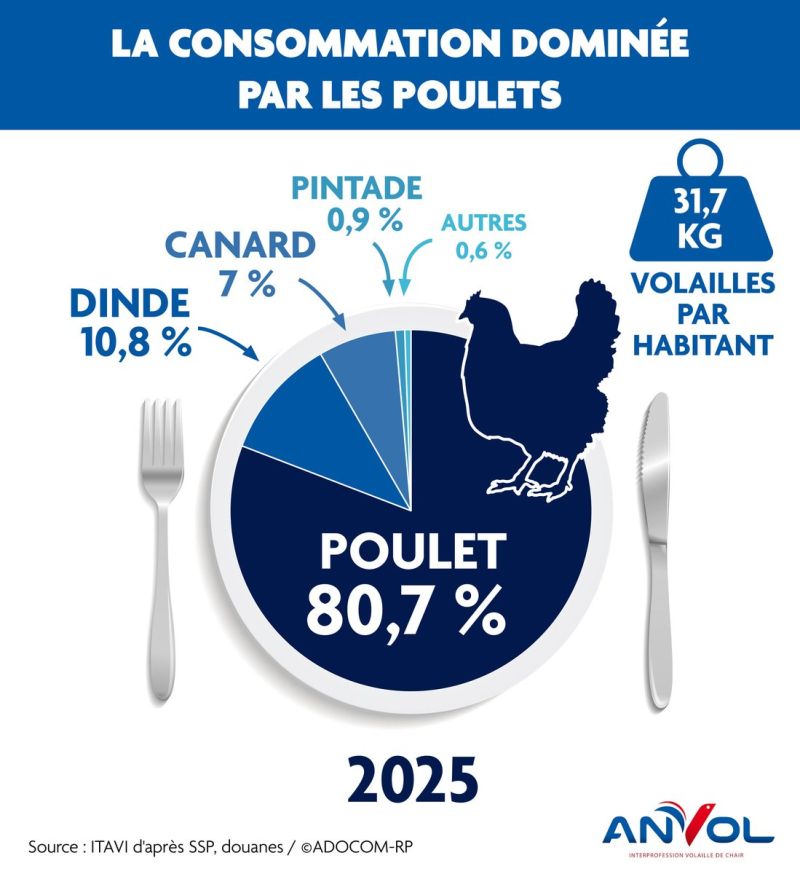 🏆 Poulet, dinde et canard sont le top 3 des volailles préférées des Français !